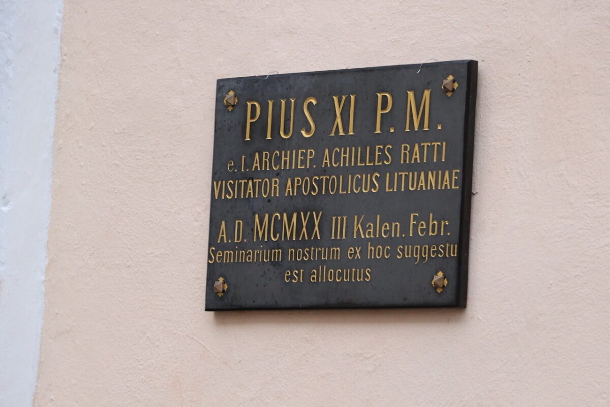Nuotr. Kauno kunigų seminarijos / Atminimo lenta popiežiui Pijui XI, kaip apaštaliniam administratoriui apsilankiusiam Kaune 1920 m.