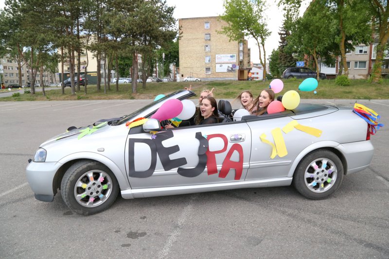 Po iškilmingos šventės gimnazijos salėje, spalvingi abiturientų automobiliai užplūdo miestą. Moksleiviai tradiciškai triukšminga apsuko kelis kartus aplink miestą, fotografavosi ir džiaugėsi artėjančiu mokyklos baigimu.