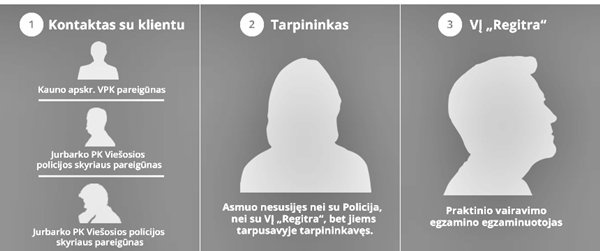 Nusikalstamoje schemoje dalyvavę asmenys, panašu, buvo apgalvoję viską nuo A iki Z – neteisėtai išlaikę B kategorijos vairavimo egzaminą asmenys buvo įrašomi į „Regitros“ registrus, todėl palaidų galų nelikdavo.