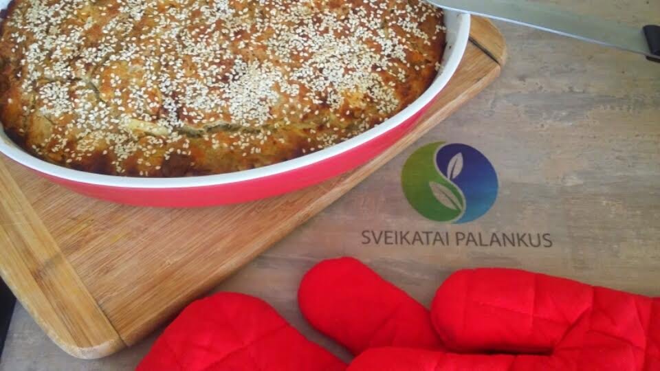 Paruošiame formą kepimui, išklojame su kepimo popieriumi. Orkaitę įkaitiname iki 180 laipsnių. Dedami tešlą į formą ir šaukštu suspaudžiame (tešla turi būti lipni). Kepame 45 – 60 min.
