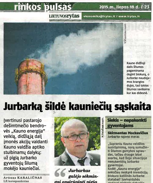 „Jurbarkas galėjo sėkmingai apsirūpinti pigia šiluma ir kauniečiams nebūtų reikėję tapti donorais.“ „Jurbarką šildė kauniečių sąskaita“. (Teigiama „Lietuvos ryto“ straipsnyje).