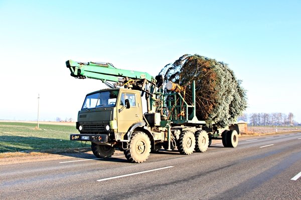Trečiadienį į Jurbarką atvežta kalėdinė eglė, kuri tradiciškai papuoš aikštę prie savivaldybės.