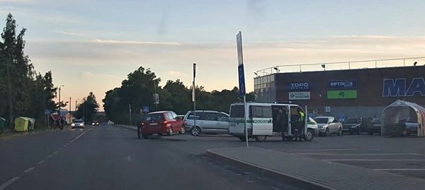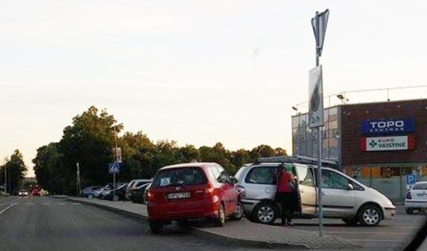 Vairuotojos nesuvaldyta „Honda“ užvažiavo ant stovėjimo aikštelę nuo gatvės skiriančio šaligatvio ir sustojo atsitrenkusi į aikštelėje stovėjusį automobilį. Paprastai šiuo šaligatviu į parduotuvę ir iš jos eina nemažai pėsčiųjų.