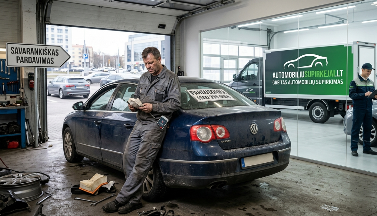 2026 m. automobilių rinka nebepalieka vietos sentimentams. Jei nesate profesionalus automobilių meistras, turintis marias laiko, savarankiškas procesas gali tapti brangia prabanga. Kartais geriausias finansinis sprendimas yra ne bandymas „išspausti“ papildomą šimtinę po mėnesį trukusių derybų, o galimybė gauti pinigus čia ir dabar, uždaryti seną skyrių ir judėti toliau.