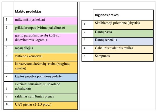 Maisto produktų ir higienos prekių krepšeliai bus dalijami šia tvarka: