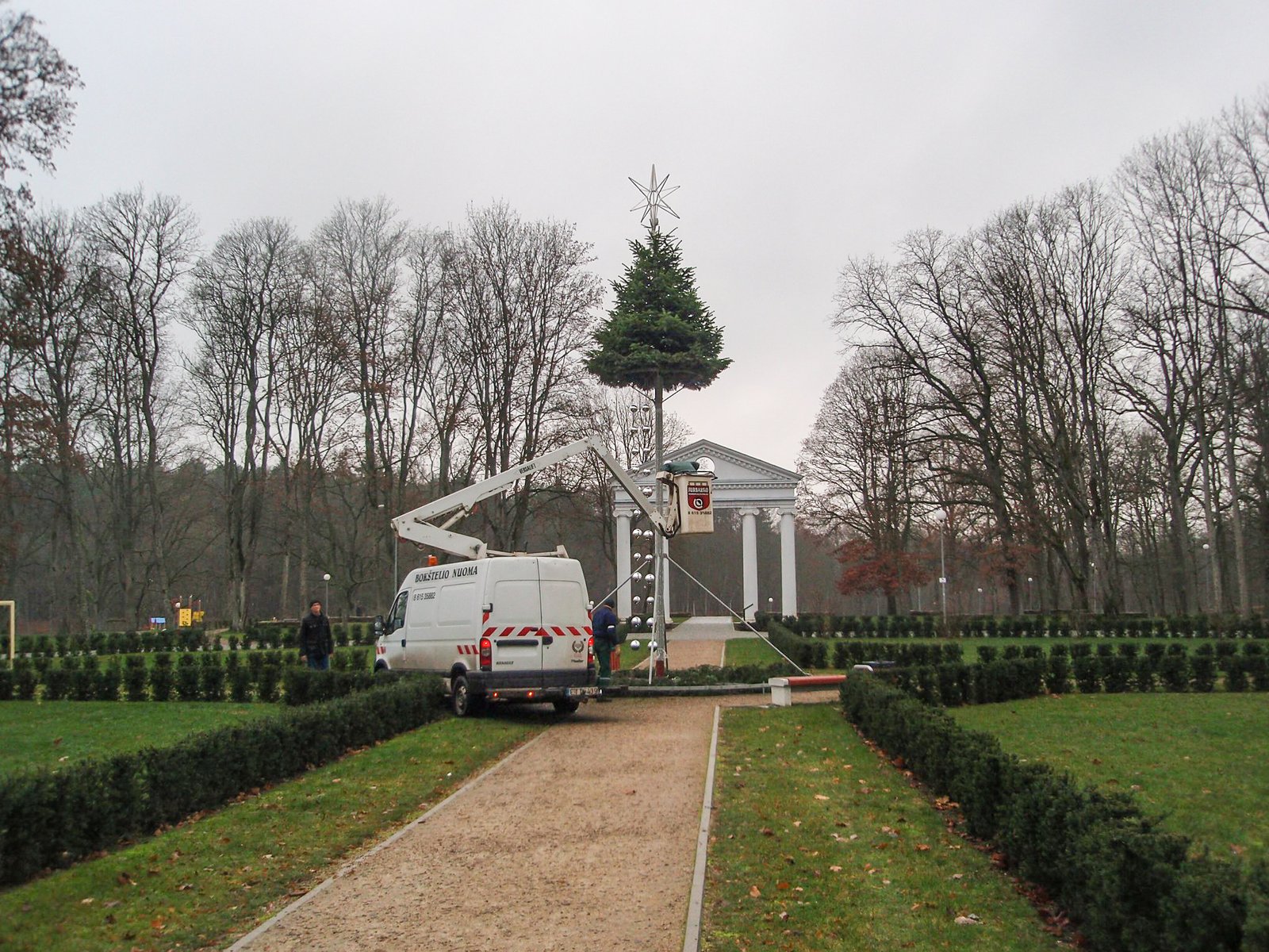 Dvaro parke jau pradėta puošti pagrindinė miesto kalėdinė eglė.