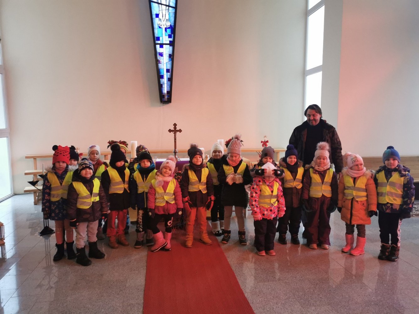 „Širdukų“ ir „Varpelių“ grupių vaikus , atvykstančius į Jurbarko K. Donelaičio evangelikų liuteronų bažnyčią jau prie vartų maloniai besišypsodamas pasitiko kunigas Mindaugas Kairys. Bažnyčioje vaikai klausėsi kunigo pasakojimo apie Kalėdų ir Advento prasmę ir Jėzaus Kūdikėlio gimimą. Vaikai galėjo pasigrožėti nuostabia Prakartėle, klausėsi vargonų skambėjimo.