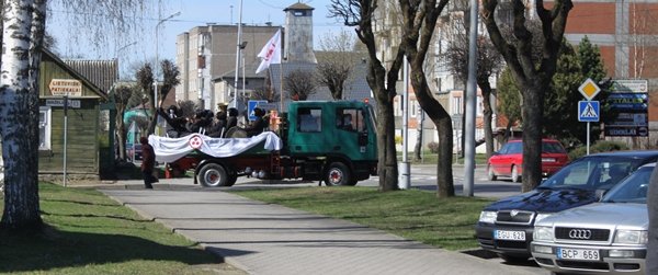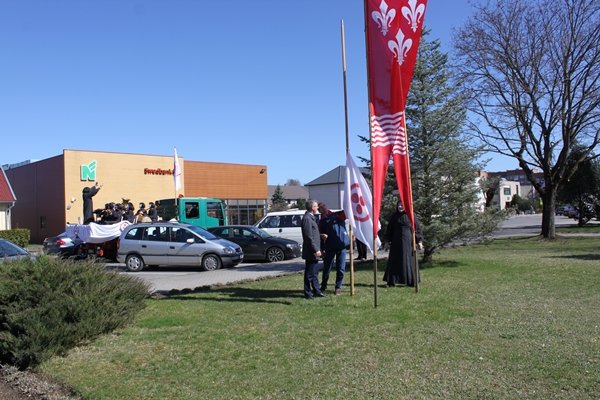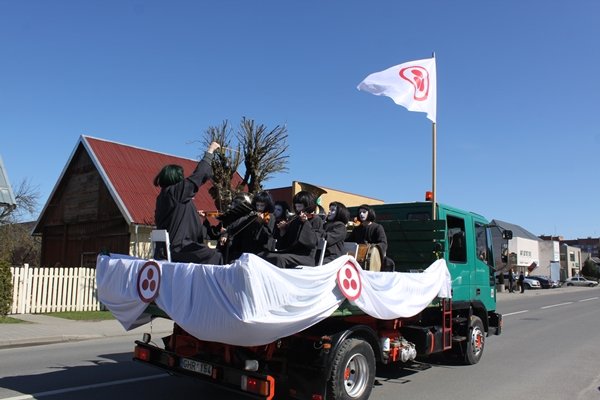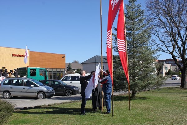 Prie Kultūros centro pirmąją vėliavą iškėlė Jurbarko r. savivaldybės meras Skirmantas Mockevičius, į ceremoniją susirinko kultūros, savivaldybės darbuotojai. Neįprastas orkestras krovininiame automobilyje ir garsiai skambanti muzika priviliojo ir vieną kitą praeivį.