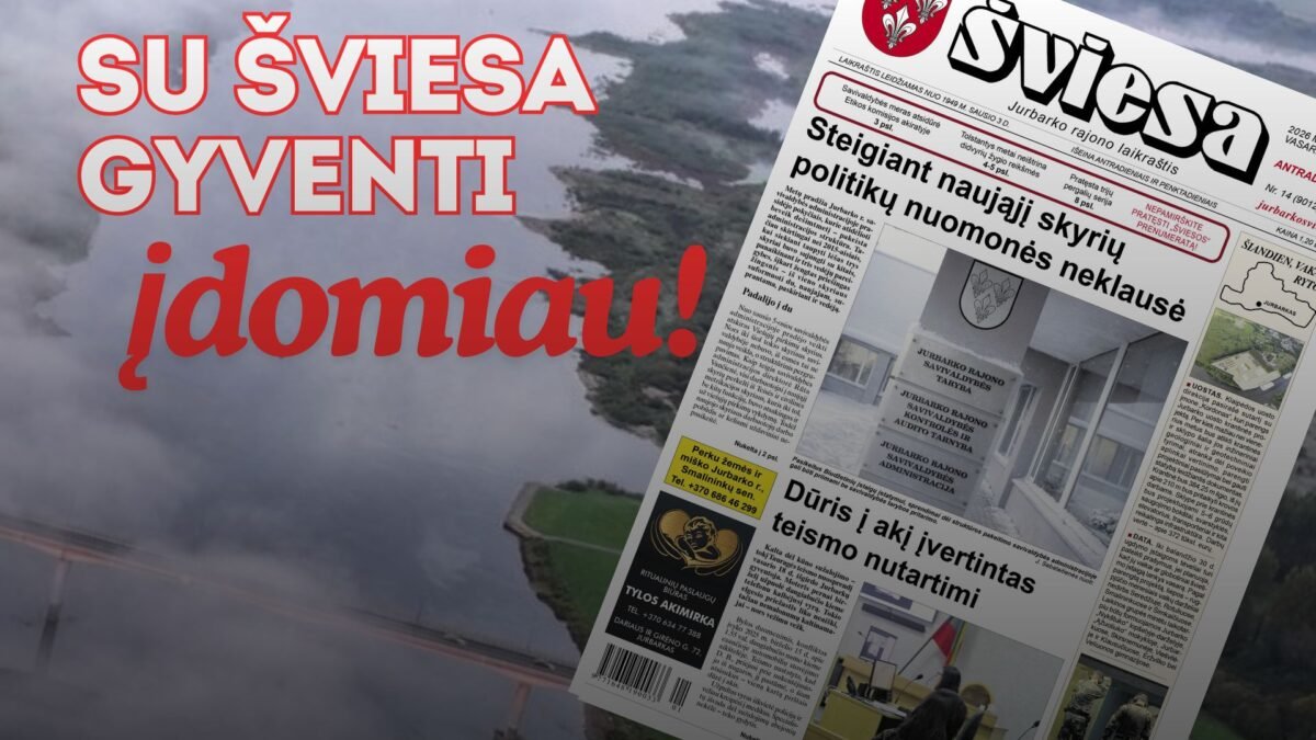 Vasario 24-ąją į jūsų rankas atkeliauja naujas Jurbarko rajono laikraščio ŠVIESA numeris. Pirmiausia jis pasieks elektroninę versiją užsisakiusių prenumeratorių pašto dėžutes, vėliau iškeliaus į visą rajoną. O laikraščio neprenumeruojantys skaitytojai ŠVIESĄ, kaip visad, galės įsigyti prekybos vietose.