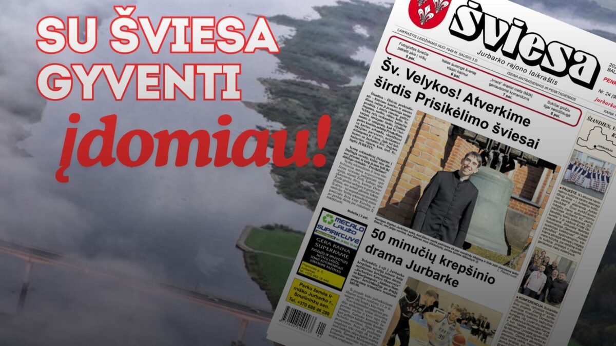 Balandžio 3-ąją į jūsų rankas atkeliauja naujas Jurbarko miesto ir rajono laikraščio ŠVIESA numeris. Pirmiausia jis pasieks elektroninę versiją užsisakiusių prenumeratorių pašto dėžutes, vėliau iškeliaus į visą rajoną. O laikraščio neprenumeruojantys skaitytojai ŠVIESĄ, kaip visad, galės įsigyti prekybos vietose.