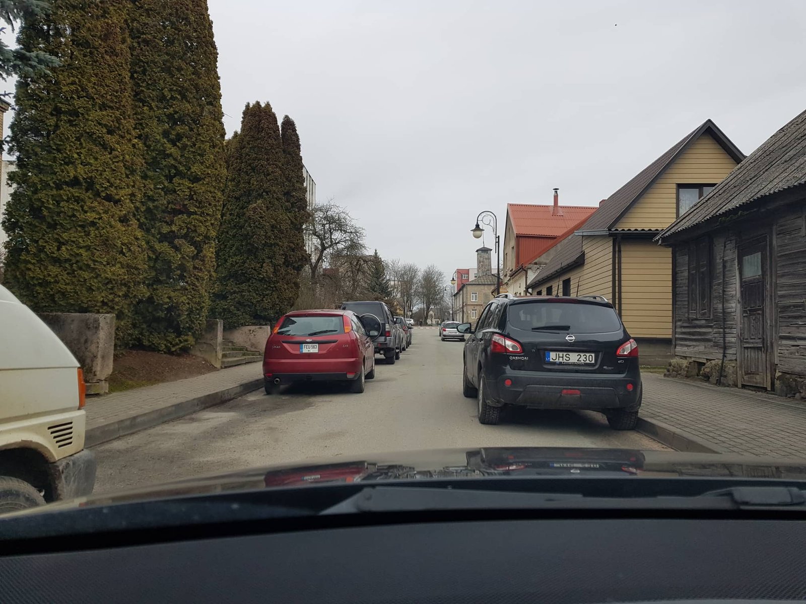 Jurbarke Ugniagesių g. – neįveikiamas kamštis. Stovėjimą reguliuojančių ženklų pakeitimo nepastebėję vairuotojai užkišo gatvę ir ši tapo nepravažiuojama.