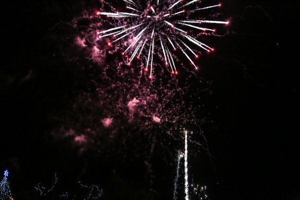 Pagrindinis rengints vyko prie Jurbarko Kultūros centro. Čia surengtas keletą minučių trukęs vaidinimas, rajono meras Skirmantas Mockevičius pasveikino susrinkusiuosius, o įžiebus eglę dangų nuspalvino fejerverkai.