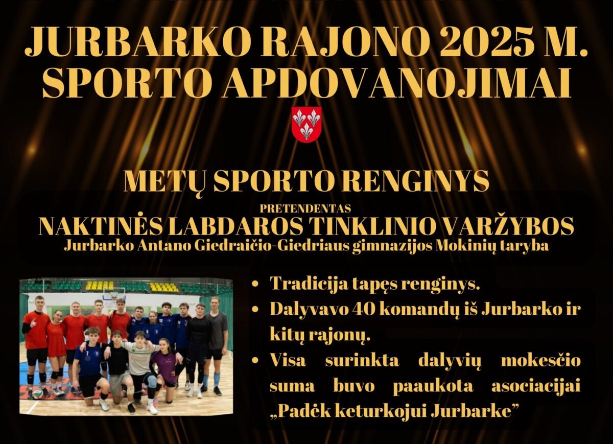 - Naktinės labdaros tinklinio varžybos – Jurbarko Antano Giedraičio-Giedriaus gimnazijos mokinių taryba
