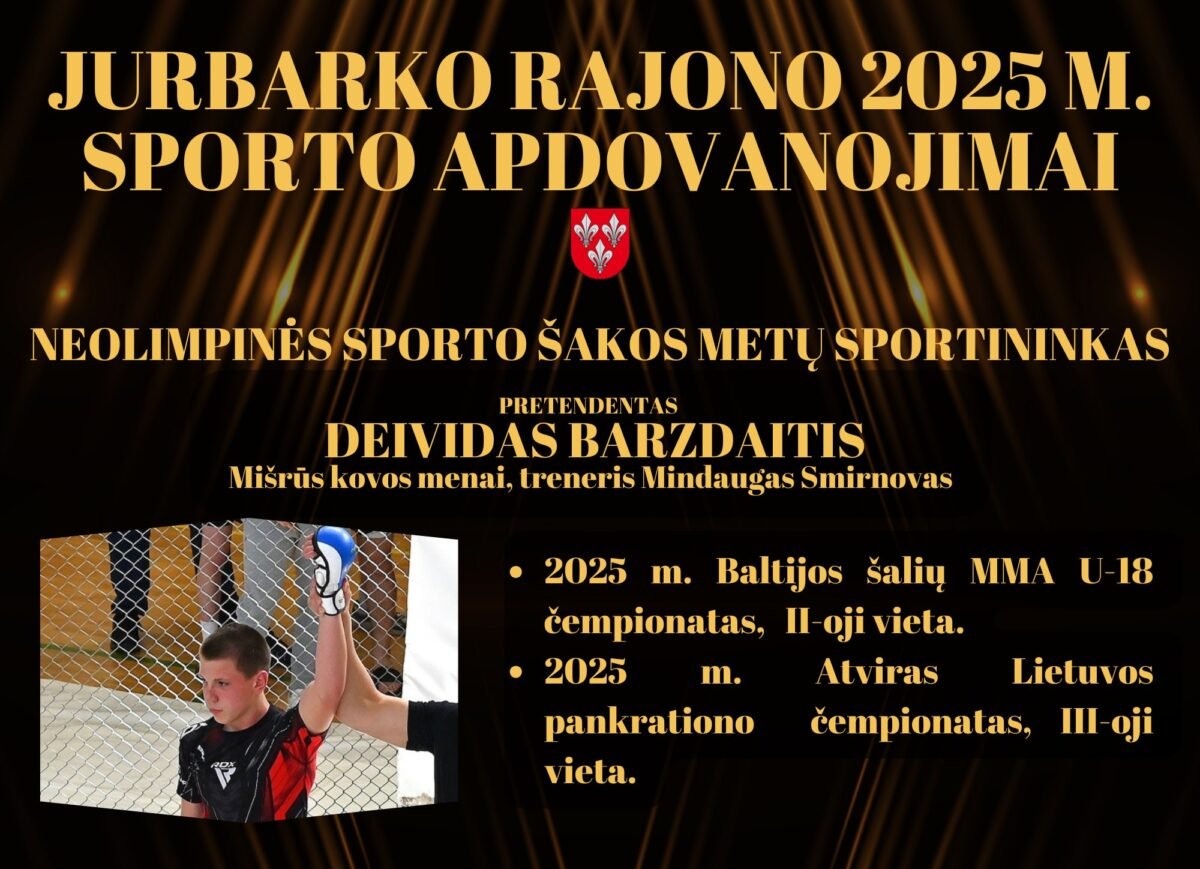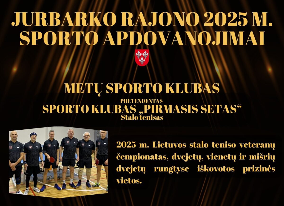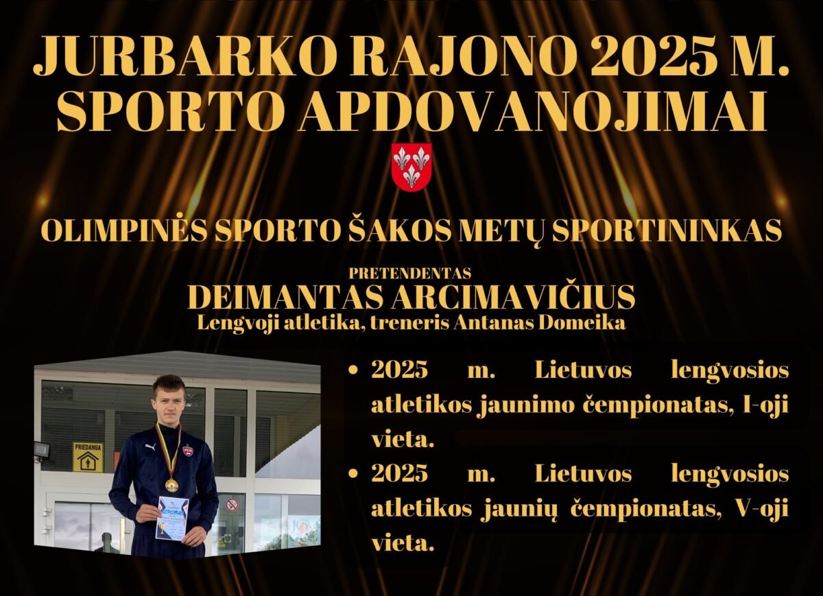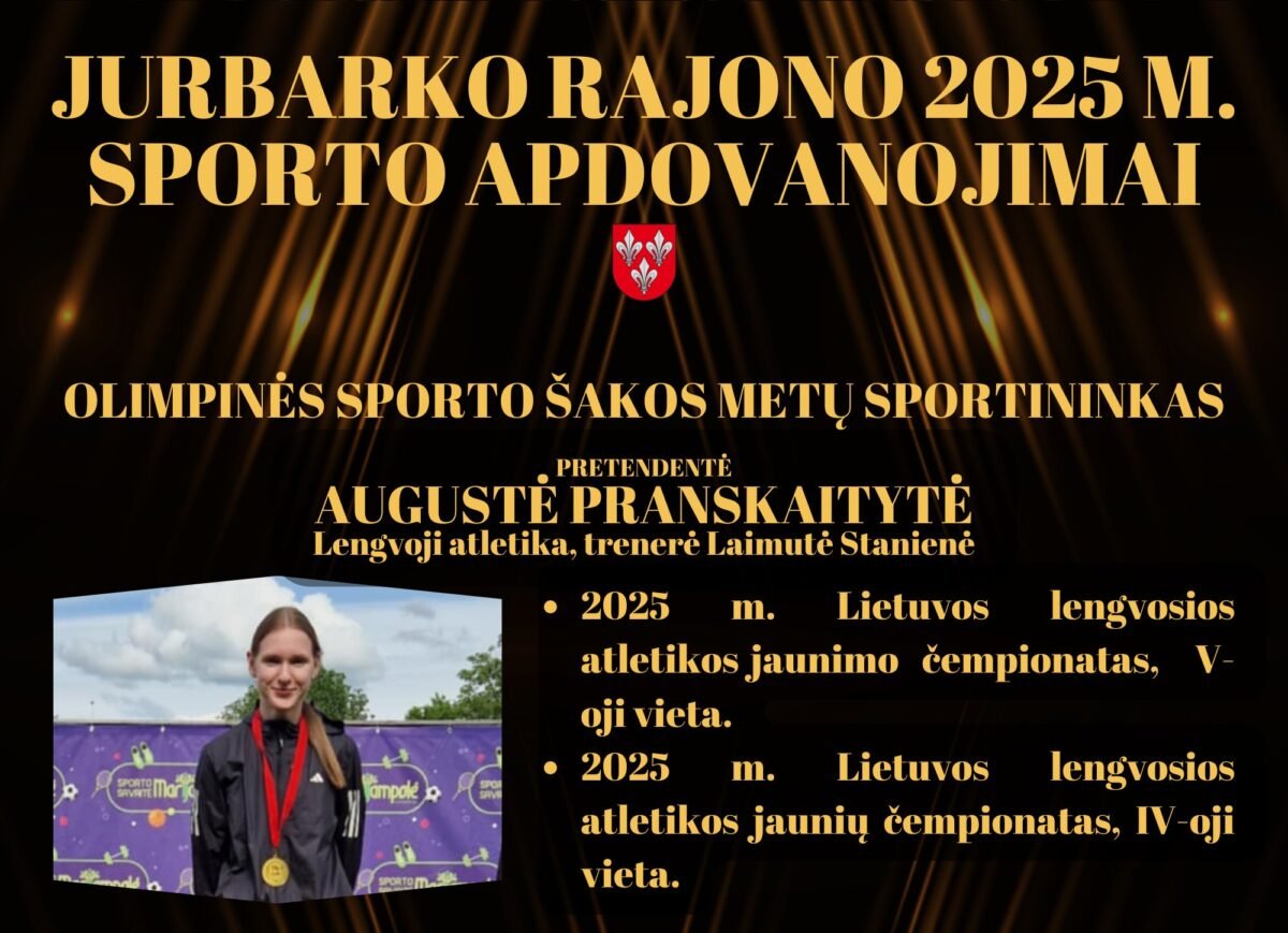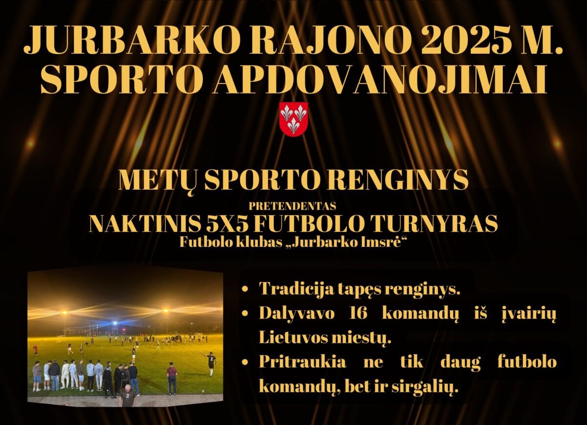 Jurbarko rajonas gali didžiuotis aktyvia, talentinga ir aukštų rezultatų siekiančia sporto bendruomene. Sportininkai, treneriai, klubai ir komandos 2025 metais savo pasiekimais garsino Jurbarko kraštą Lietuvoje ir už jos ribų. Siekiant įvertinti jų pastangas ir rezultatus, skelbiamas Jurbarko rajono 2025 metų sporto apdovanojimų balsavimas.