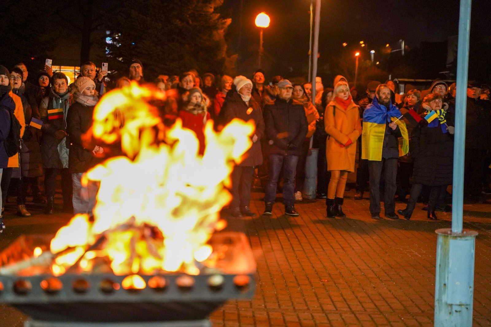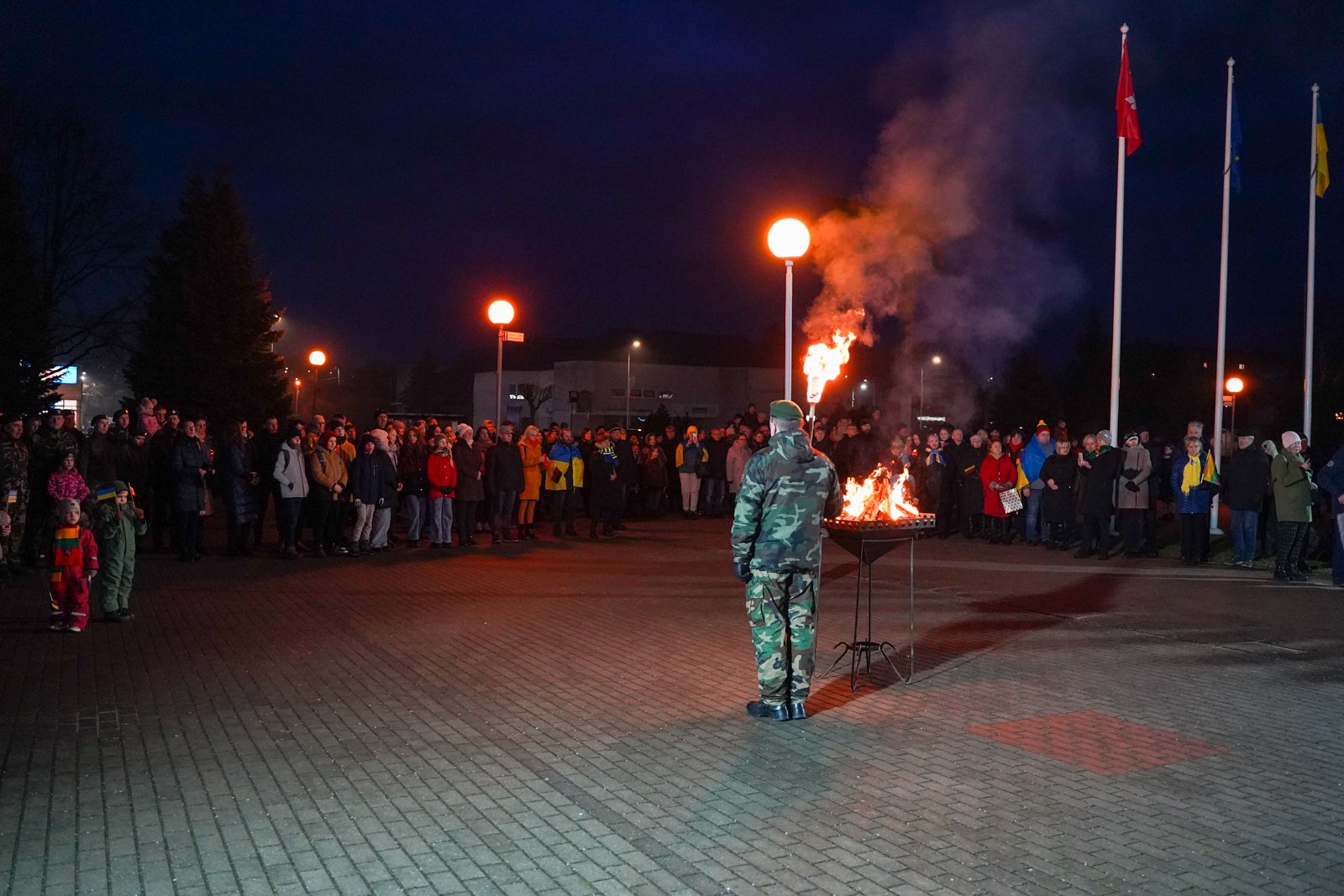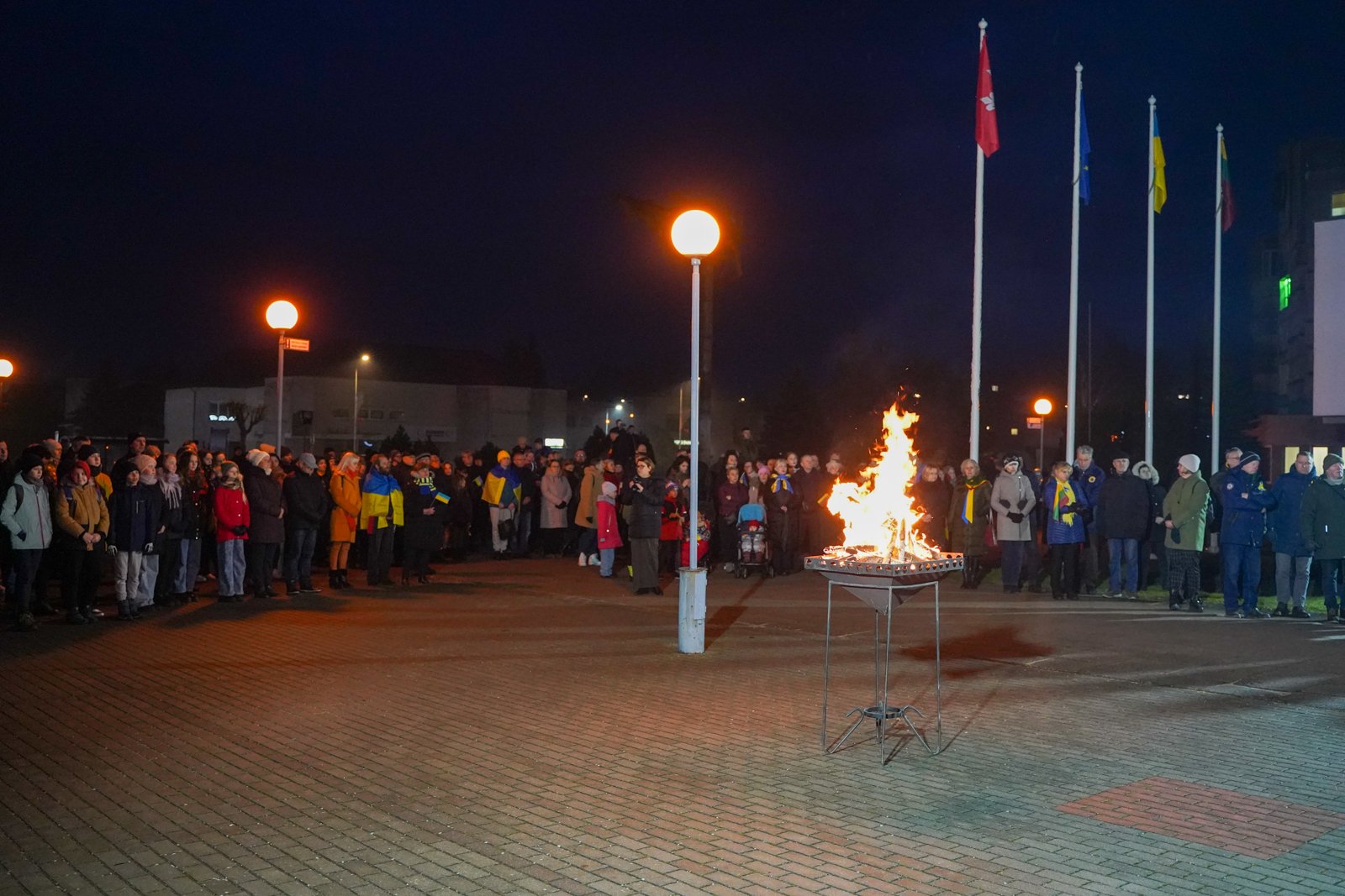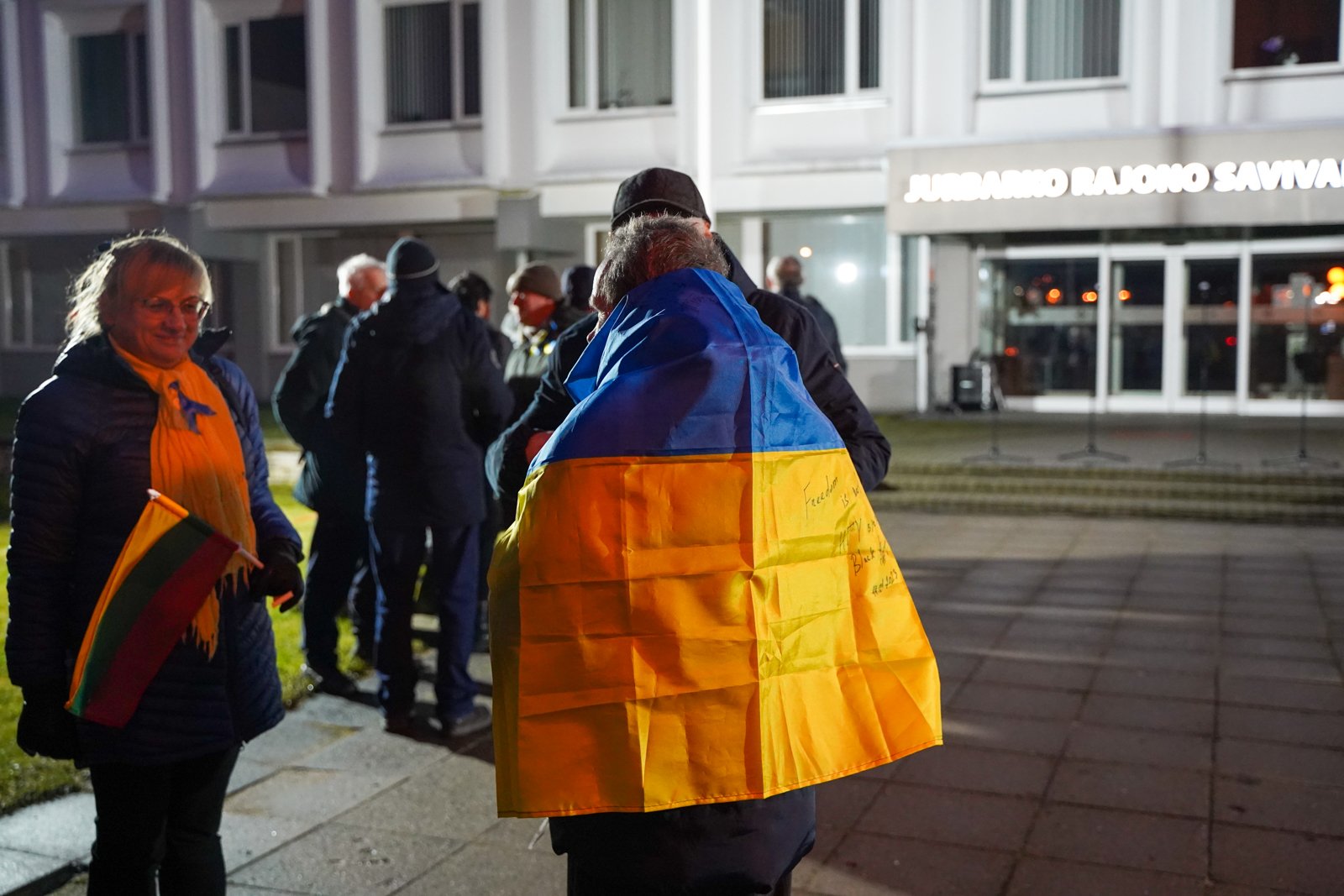 Penktadienio vakarą Jurbarko r. savivaldybės aikštėje įvyko kovojančios Ukrainos palaikymo akcija „Laisvė šviečia“.