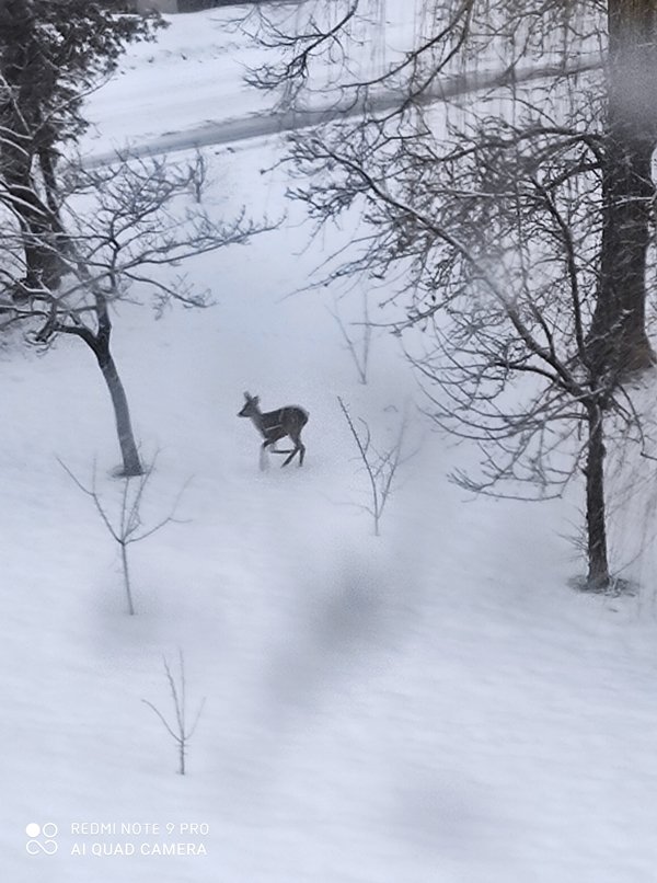 Nuotraukose – vieną Gedimino g. daugiabučių kiemų tyrinėjanti stirna.