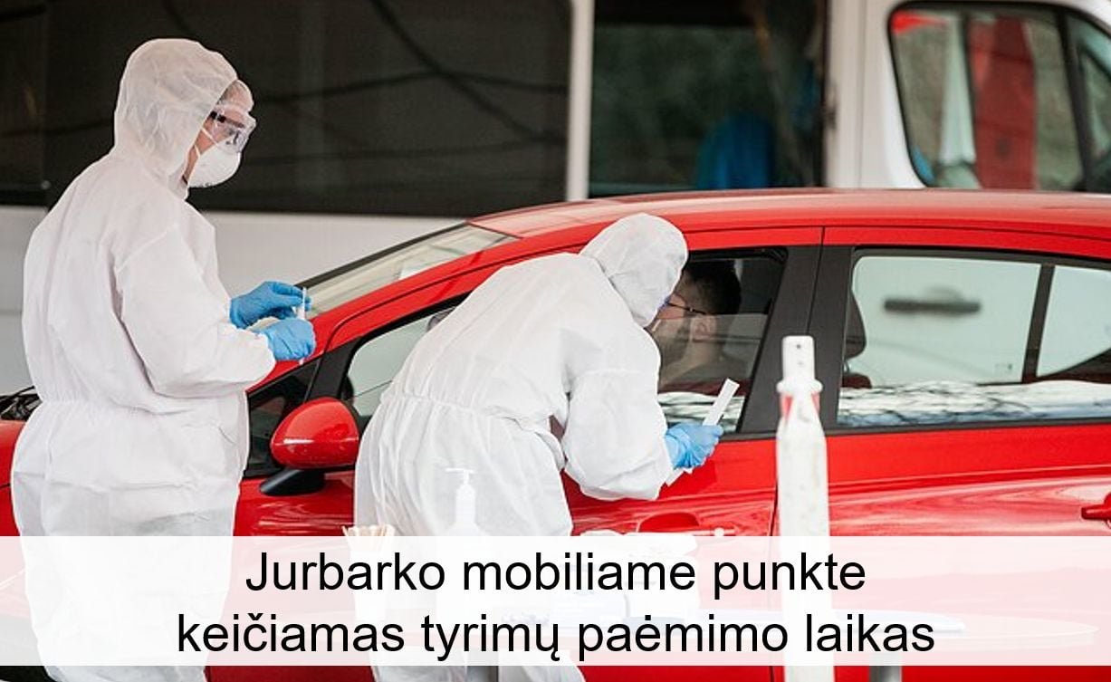 Mobiliame punkte užtikrinama galimybė kiekvienam Jurbarko rajono gyventojui atlikti PGR molekulinį tyrimą ir greitąjį antigeno testą, teikiant prioritetus asmens sveikatos priežiūros darbuotojams, socialinės globos įstaigų darbuotojams, pareigūnams.