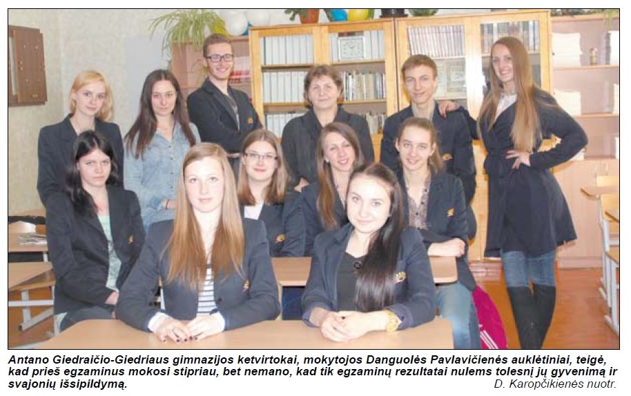 Taigi prasideda didysis darbymetis. Jaudulio bus ir mokiniams, ir jų tėvams bei kitiems artimiesiems, ir mokytojams. Didžiausias organizacinis krūvis tenka valstybinių egzaminų centrui, kuriuo mūsų rajone paskirta Antano Giedraičio-Giedriaus gimnazija. Egzaminų dienomis atsakingas darbas laukia vykdytojų, kuriais būna pagrindinių mokyklų vadovai, Švietimo centro darbuotojai.