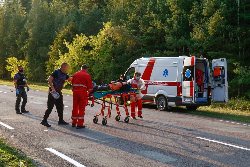 Pirminiais duomenimis, motociklu važiavęs vyras atsipirko daugybiniais sumušimais, rankos, žandikaulio lūžiais. Tikslius sužalojimus nustatys Kauno klinikų medikai.