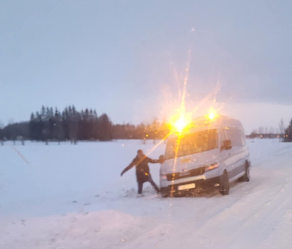 Redakcijos žiniomis, nelaimė įvyko, kai smarkiai apsnigtame ir nevalytame kelyje prasilenkinėjo du autobusai.