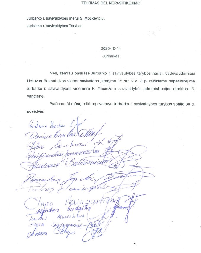 Opozicijos sprendimas, aptarus susitikimo rezultatus, nebuvo spontaniškas, tačiau griežtas: opozicija užregistravo pareiškimą dėl savivaldybės administracijos direktorės R. Vančienės ir vicemero E. Mačiežos nušalinimo iš pareigų.