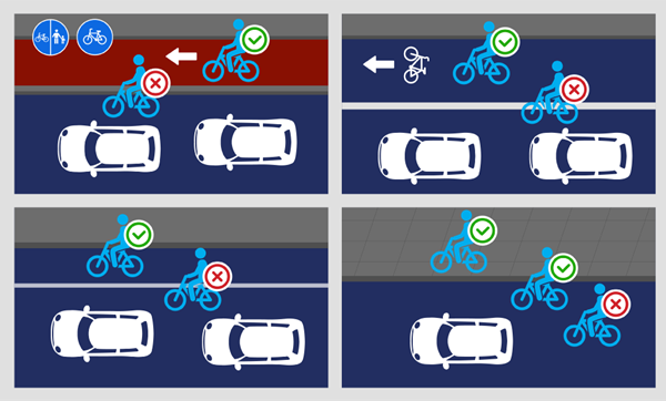 Iš esmės KET reguliavimas dėl dviratininkų važiavimo važiuojamąja dalimi nepasikeitė – galimybė važiuoti važiuojamąja dalimi nėra panaikinta, ja galima pasinaudoti esant tokioms sąlygomis: dviratininkas visų pirma privalo rinktis jam skirtą infrastruktūrą (važiuoti dviračių takais, pėsčiųjų ir dviračių takais arba dviračių juostomis), jei tokia yra, o kur jos nėra, privalo važiuoti kelkraščiu su asfalto arba betono danga.
