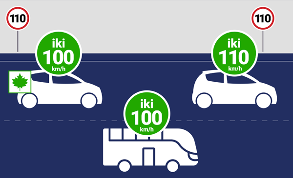 Pavyzdžiui, rekonstruota kelio A14 Vilnius-Utena atkarpa (16 km) nėra automagistralė ar greitkelis, bet joje nustatytas 110 km/h leistinas greitis. Bendruoju atveju, kai nėra kelio ženklų, autobusais keliuose su asfalto ar betono danga leidžiama važiuoti ne didesniu kaip 80 km/h greičiu. Pagal pakeisto KET punkto nuostatas rekonstruoto kelio A14 atkarpoje autobusas gali važiuoti šiai transporto priemonei KET nustatytu maksimaliu leistinu greičiu, t. y. 100 km/h leistinu greičiu (bendruoju atveju taikomu automagistralėse).