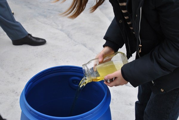 Keptuvėje čirškinto aliejaus vieta – ne kriauklėje. Keisti įpročius siūlo pilietinių iniciatyvų projektas „Kuriame Lietuvą 2021!“, kurio sumanytojai Joniškio rajono mokyklose jau pradėjo statyti specialias talpas panaudotam aliejui surinkti.