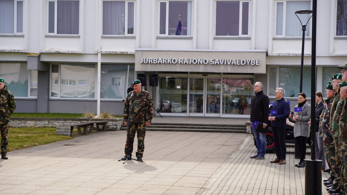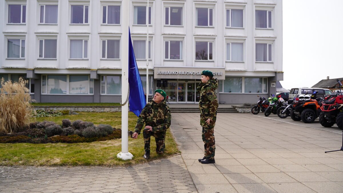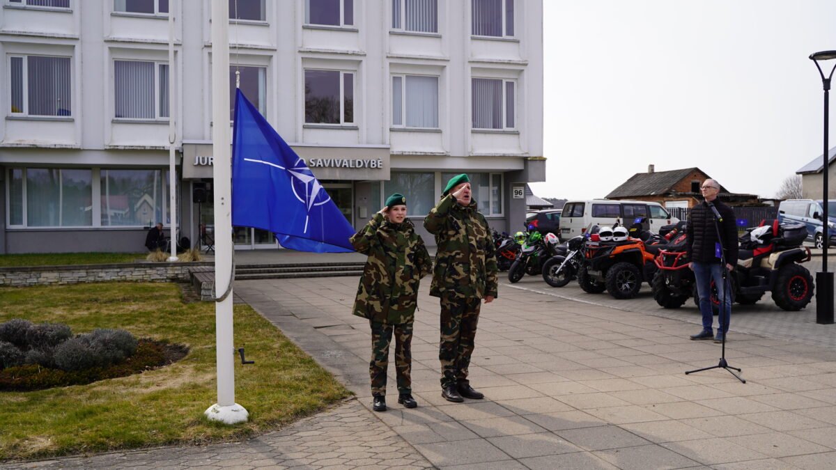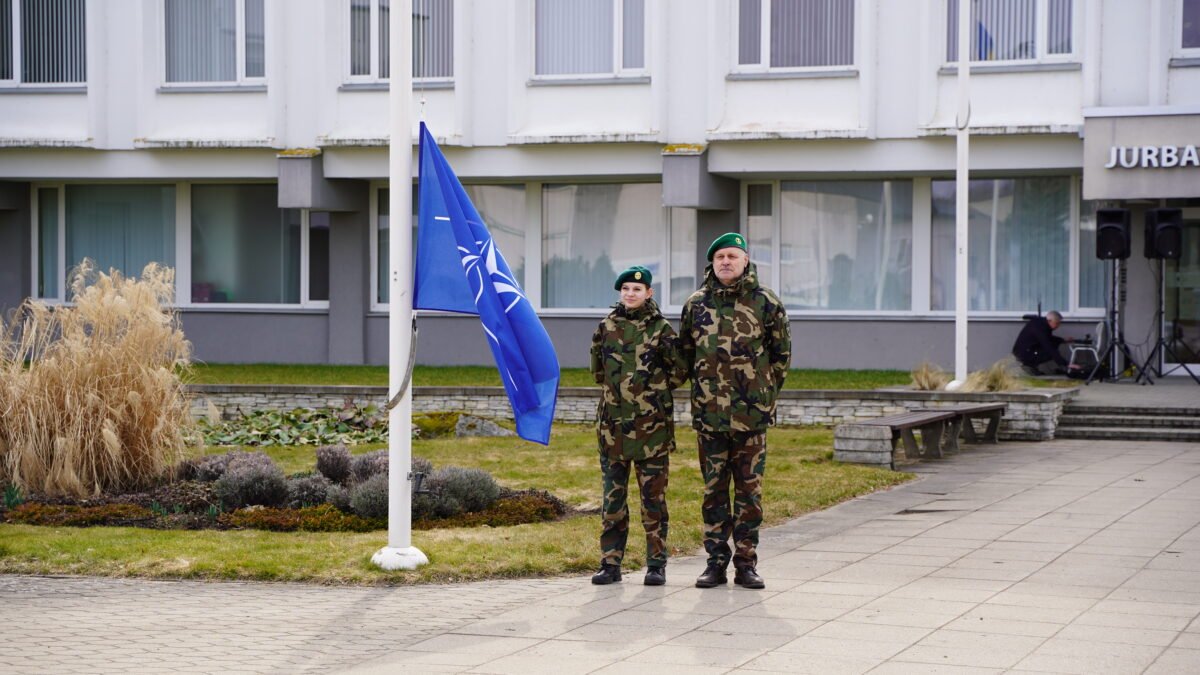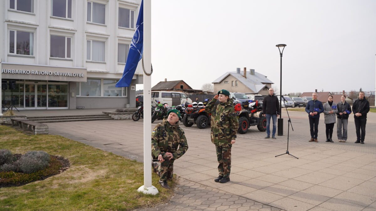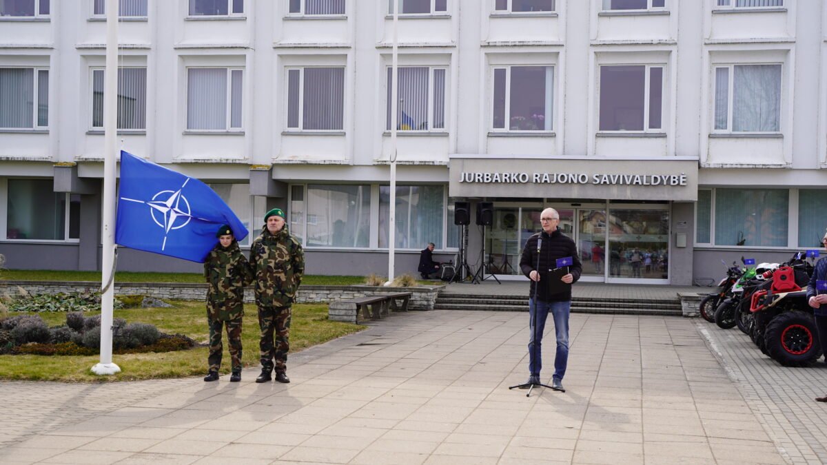 Metinės paminėtos ir Jurbarke – aljanso vėliavėles aplink miestą vežė motociklininkai, o vėliau savivaldybės aikštėje iškilmingai iškelta NATO vėliava.