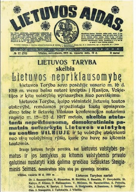 Šio laikraščio originalų Vilniuje 1918 m. vasario 16-ąją suspėta atspausdinti ir slapta iš Totorių gatvėje Nr. 20 buvusios Martyno Kuktos spaustuvės išnešti gal 100-120 egzempliorių, kol vokiečių cenzūra susigaudė ir spausdinti uždraudė, o likusius spaustuvėje konfiskavo. Mat jau iš anksto vokiečių žvalgyba įtarė, jeigu bus spausdinama, tai čia!