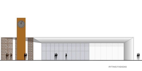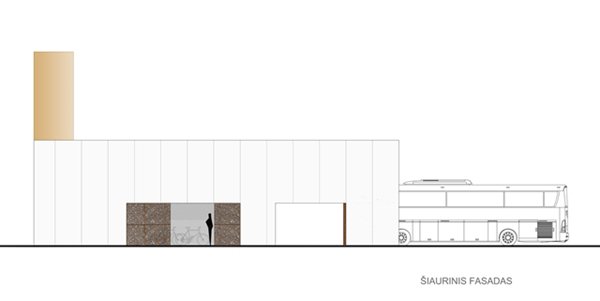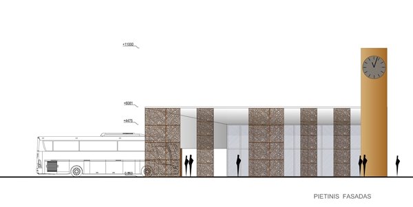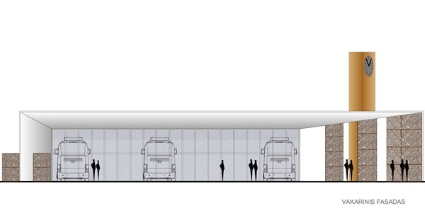 Seniai nesu matęs tiek daug vienu metu stovinčių autobusų, kiek pavaizduota vakariniame fasade. O galės dar kokius 3 papildomai sutalpinti.