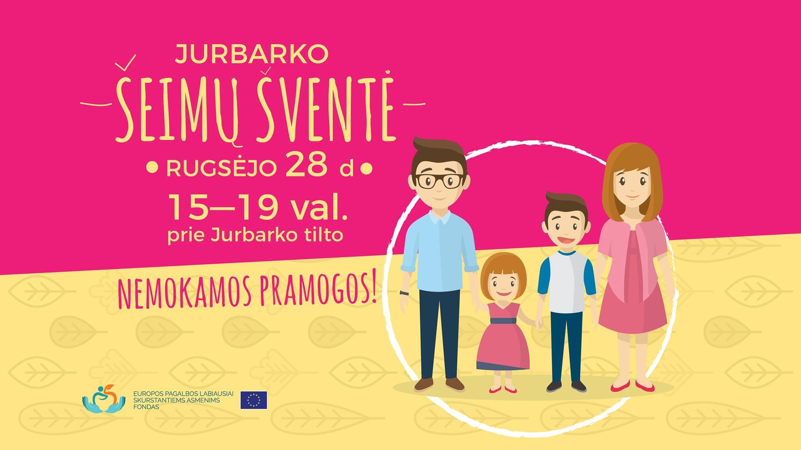 Šį penktadienį nuo 15 iki 19 valandos Jurbarko miesto gyventojus ir svečius į vieną vietą sukvies neįtikėtinai linksmas ir pramogų gausus nemokamas renginys – ,,Jurbarko šeimų šventė’’. Prie Jurbarko tilto vyksianti šventė paskutinįjį rugsėjo penktadienį dovanos nemokamus atrakcionus vaikams, edukacinius užsiėmimus ir estafetes šeimoms.