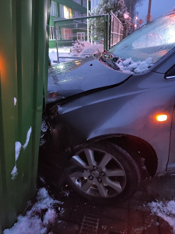 Antradienio rytą P. Paulaičio gatve važiavusio automobilio vairuotojas nesuvaldė transporto priemonės, perčiuožė sankryžą su Barkūnų gatve ir trenkėsi į „Lukšių pieninės“ vartus. Smūgio būta stipraus – išversta tvora ir vartai, o „Toyota“ automobilio priekis nemenkai sulamdytas.