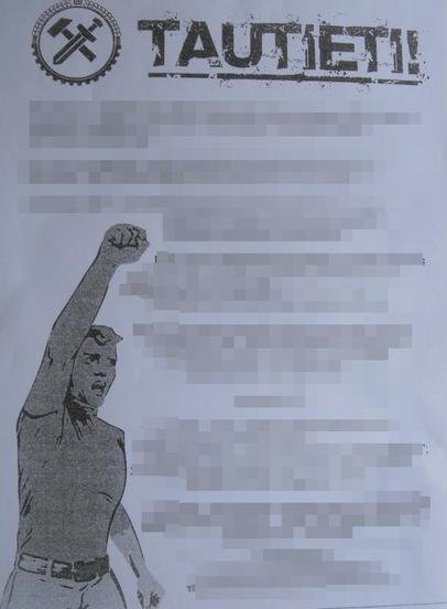 „Lietuva jau 25 metus yra administruojama JAV kolaborantų, kurių pagrindinis tikslas yra asmeninė nauda įsiteigimas okupantams“, – rašoma su kalbos klaidomis surašytose agitacijose.