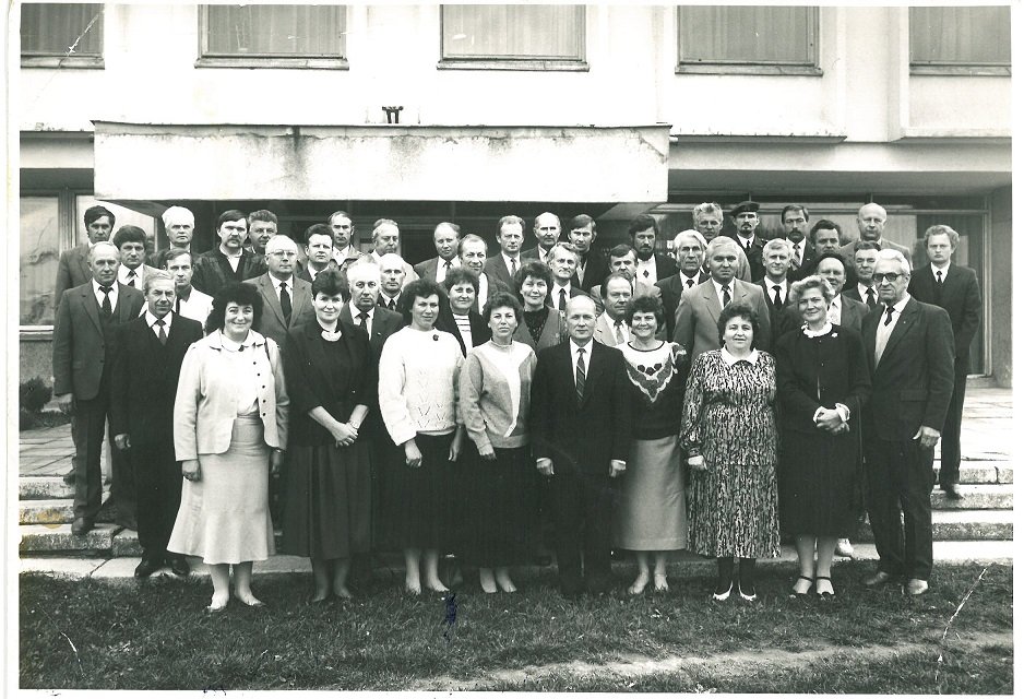 Pirmoji nepriklausoma rajono taryba. I eilė: Judita Vireikienė, Regina Kliukienė, Irena Gvildienė, Virginija Krikštanienė, Tarybos pirmininkas Antanas Kazakevičius, Birutė Skandūnienė, Agnutė Jasaitienė, Birutė Stanišauskienė, Antanas Teodoras Kasiulis; II eilė: Algirdas Pilkauskas, Arvydas Danisevičius, Sigutė Jokūbaitienė, Birutė Antanina Gustaitienė, Petras Ivanauskas, Pranas Gargasas, Kazimieras Rimantas Veniulis; III eilė: Povilas Parnarauskas, Jonas Pečiulis, Severinas Nenorta, Zigmas Rimkus, Alfonsas Kruša, Anzelmas Vančys, Zigmas Zakaras, Vytautas Atkočaitis, Zenonas Jonas Januška, Alfonasas Stankaitis, Gintautas Pesys; paskutinės eilės: Vytautas Giedraitis, Algirdas Plėšikaitis, Petras Budrys, Saulius Jarutis, Zenonas Vežikauskas, Edvardas Strončikas, Mindaugas Šlepševičius, Juozas Daujotas, Algirdas Saldukas, Jonas Aleksiejus, Vytautas Pečiukėnas, Petras Baršauskas, Vidūnas Belevičius, Vytautas Valutis, Algirdas Genys, Remigijus Brazaitis, Česlovas Meškauskas, Bronius Švitra.