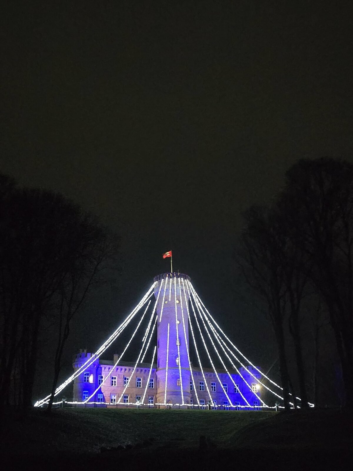 Raudonės pilies kalėdine eglutę aukščiu greičiausiai pralenktų tik Vilniaus televizijos bokštas.