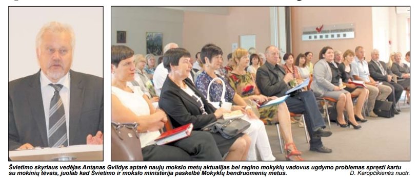 Vasara visada prabėga per greitai, rugsėjis ateina netikėtai. Bet tik ne mokytojams, kurie neretai net per atostogas nenustoja galvoję apie mokyklą ir savo mokinius. Kai rugsėjo pirmąją vaikai suguža į klases, švietimo vadovai ir pedagogai jau būna apgalvoję ir apsvarstę naujųjų mokslo metų darbus. Belieka susitelkus visai mokyklos bendruomenei auginti ir ugdyti jauną žmogų – mūsų valstybės ateitį.