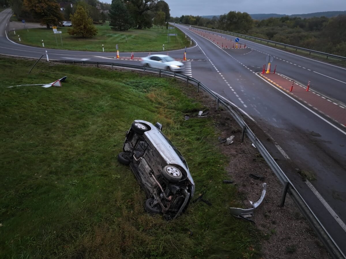 „Opel Zafira” automobilis buvo gerokai aplamdytas, tačiau vairuotojas atsipirko tik išgąsčiu ir nedideliais sumušimais.