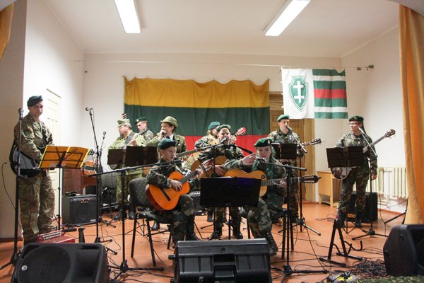 Iš darganoto oro į pilyje įsikūrusios mokyklos aktų salę sugužėjusiems sąskrydžio dalyviams mokyklos direktorius Vytautas Staponas papasakojo pilies istoriją. Vėliau scenoje pasirodė ansamblis „Vėjūkas“, kuris atliko keletą patriotinių tarpukario dainų. Aušros Mičiulės vadovaujamo ansamblio gretose groja ir dainuoja keletas šaulių. Sąskrydžio proga jų gretos pagausėjo – prie „Vėjūko“ vienam vakarui prisijungė du muzikantai iš šaulių būrio „Juodas vilkas“.