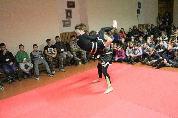 Po „Vėjūko“ pasirodymo jaunųjų šaulių laukė mišrių kovos menų klubo „Pantera“ pasirodymas ir paskaita apie Lietuvos aviaciją. Apie šalies dangų saugančius karius jaunimui papasakojo Mažosios Lietuvos kultūros centro direktorius Arvydas Griškus.
