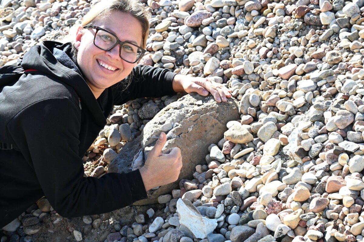 „Ėjau palei akmenų krūvą, net plaktuko neturėjau, tik žiūriu – dideliam akmeny lyg koks stuburas išlindęs per plyšį. Akmeniui nuskilus visi apstulbome – tai buvo milžiniškas amonitas“, – pasakojo amonitą pastebėjusi Vaclovo Into akmenų muziejaus vyr. muziejaus rinkinių kuratorė – direktoriaus pavaduotoja Valda Vaškienė.
