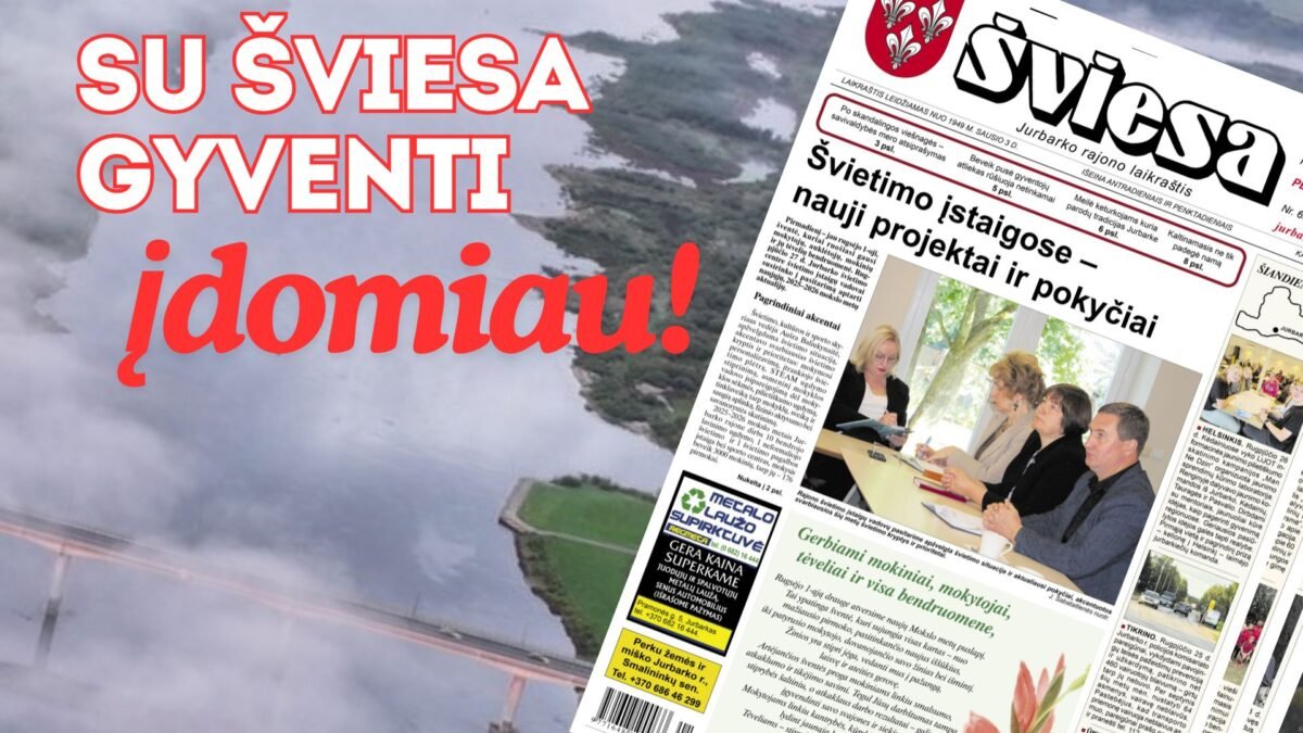 Rugpjūčio 29-ąją į jūsų rankas atkeliauja naujas Jurbarko r. laikraščio ŠVIESA numeris. Pirmiausia jis pasieks elektroninę versiją užsisakiusių prenumeratorių pašto dėžutes, vėliau iškeliaus į visą rajoną. O laikraščio neprenumeruojantys skaitytojai ŠVIESĄ, kaip visad, galės įsigyti prekybos vietose.