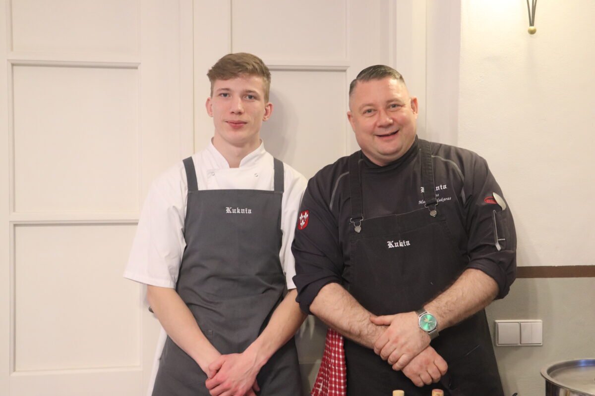 Kad vakaras kitoks, buvo galima suprasti vos įėjus į salę, pasitikusią viliojančiais kvapais. Panemunės pilyje įsikūrusio restorano „Kuknia“ šefas Marius Makaras kartu su pameistriu – Smalininkų technologijų ir verslo mokyklos mokiniu Giedriumi Bakšaičiu – čia pat nuo ankstyvo ryto gamino netradicinį Mažosios Lietuvos kraštui patiekalą – tikrą vengrišką bogračą.