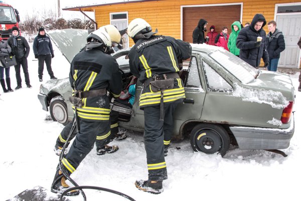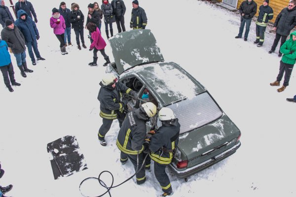 Jurbarko r. priešgaisrinės gelbėjimo tarnybos ugniagesiai pademonstravo, kaip iš avariją patyrusio automobilio vaduojami prispausti žmonės. Per inscenizuotą gelbėjimo operaciją senutėlis „Opel“ buvo sukarpytas ir jame buvusios moterys iškeltos.