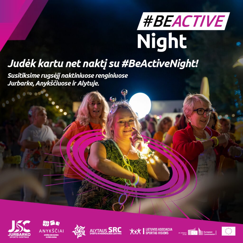 Rugsėjo 26 d., Alytaus sporto ir rekreacijos centre taip pat vyks „BeActive Night“ renginiai. Ši neeilinė sporto šventė bus nušviesta naktinio dangaus ir neoninių šviesų. Renginys prasidės atviroje erdvėje, įspūdingu masiniu pasirodymu. Po atidarymo veiksmas persikels į sporto centro erdves, kur vyks įvairių sporto šakų – tinklinio, futbolo, krepšinio, sportinių ir linijinių šokių, gimnastikos, šaškių bei šachmatų varžybos. Žiūrovų laukia nekasdienė akistata – sporto centro auklėtiniai susirungs su miesto politikais, verslininkais, žiniasklaidos atstovais. Mažuosius dalyvius ir šventės lankytojus pasitiks animaciniai herojai ir pakvies prisijungti prie sportiškų veiklų. „BeActive Night“ – tai ne tik sporto renginys, tai naktis suburianti visą bendruomenę judėti, džiaugtis ir švęsti sportą kartu!