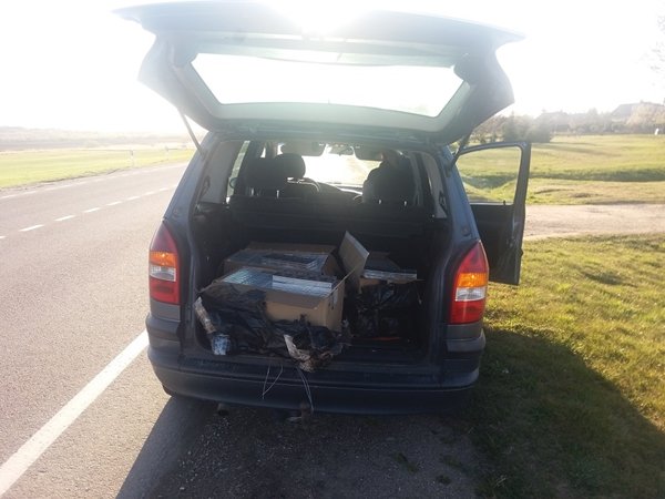 Pasieniečiai sulaikė Jurbarko gyventoją, kuris automobiliu „Opel Zafira“ gabeno 1,5 tūkst. pakelių kontrabandinių cigarečių.