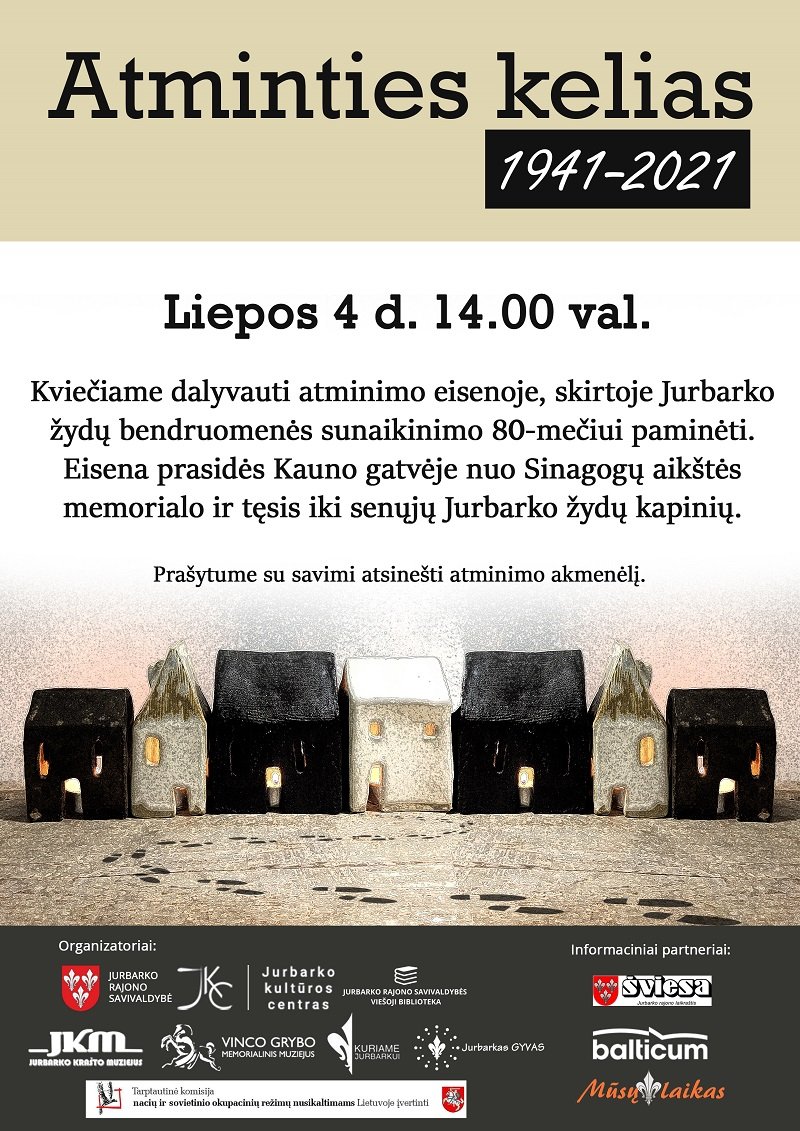 Jurbarke Atminimo eisena, skirta Jurbarko žydų bendruomenės sunaikinimo 80-mečiui paminėti, organizuojama sekmadienį. Ši data siejama su 1941 m. liepos 3-ąja, kai šalia Jurbarko prigludusiame Naujasodžių kaime buvo nužudyta daugiau nei 300 nekaltų žmonių, daugiausia žydų.