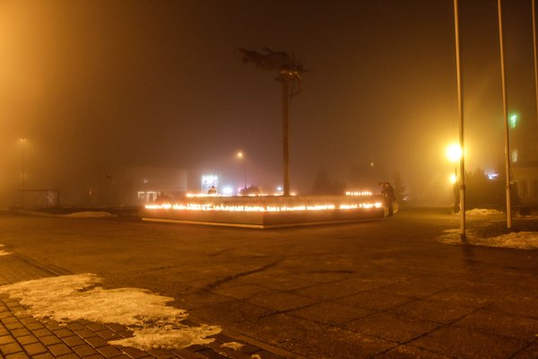 Jurbarke žvakutes žmonės dega prie savivaldybės. Čia prie iki rytojaus vakaro truksiančios akcijos paragino prisijungti jurbarkietė Inga Molevaitė.