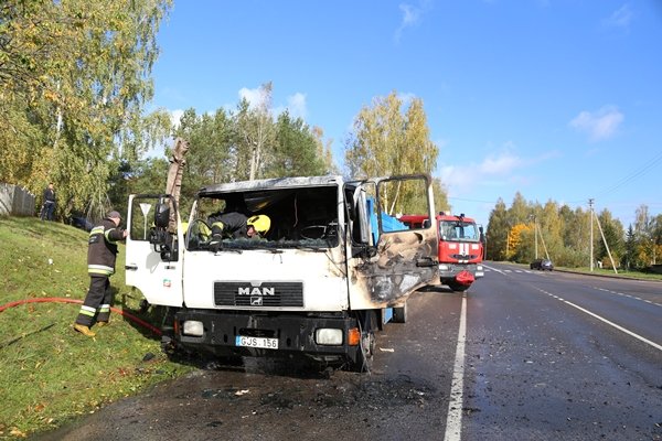 Pasak liudininkų, įsiplieskusi ugnis buvo didžiulė. Nors atskubėję ugniagesiai gaisrą greitai užgesino, išdegė sunkvežimio kabina, nuo karščio išdužo stiklai. Ugniagesiai išgelbėjo transporto priemonės krovinį – pilną malkų priekabą. Per gaisrą žmonės nenukentėjo.