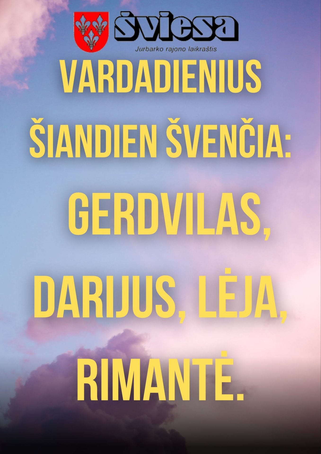 Savo vardadienius pirmadienį švenčia Gerdvilas, Darijus, Lėja, Rimantė;
